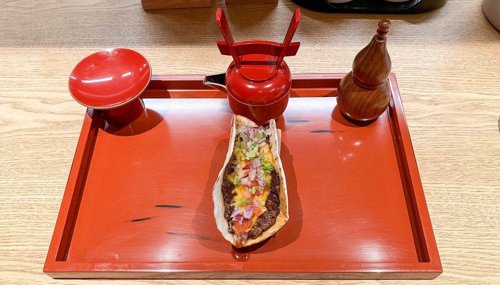 和の趣が漂うお神酒セットのような器で提供されるタコスは、ジューシーな和牛と野菜、とろけるチーズが絶妙なハーモニーを奏でます。ここでしか味わえない新感覚のタコスを堪能しに、ぜひ訪れてみてくださいね。