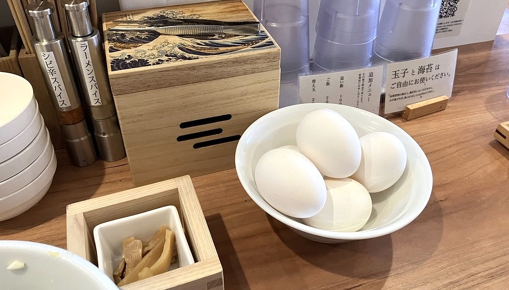 卓上の卵と海苔も無料でいただけるため、自分好みにアレンジできるのも嬉しいポイント。