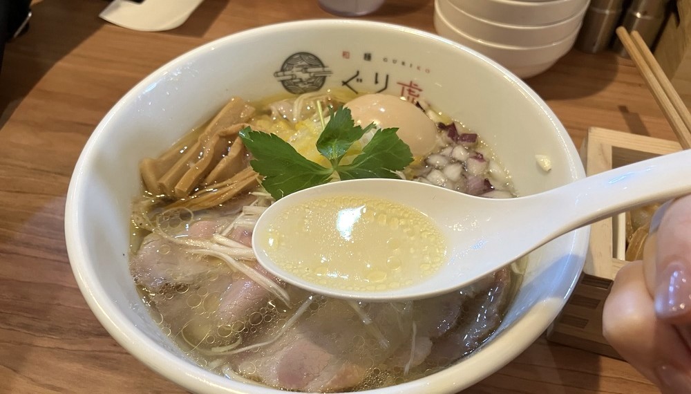透き通ったスープが魅力の特製鯛塩ラーメン|和麺ぐり虎 京都本店
