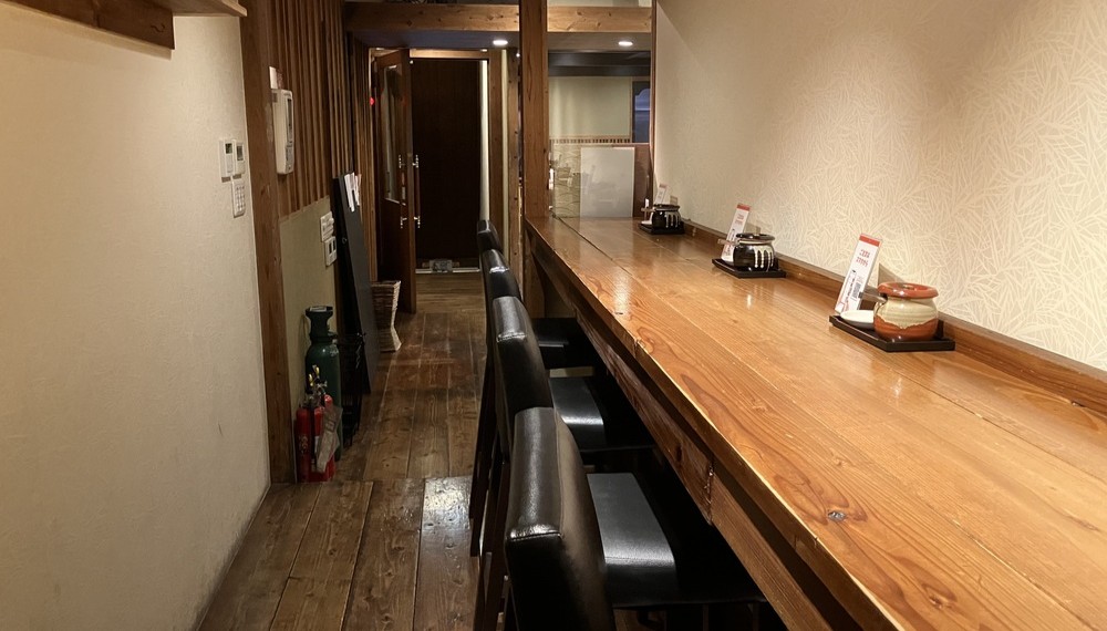 店内はカウンター席とテーブル席に分かれており、一人での利用から複数人まで対応しやすい造りです。