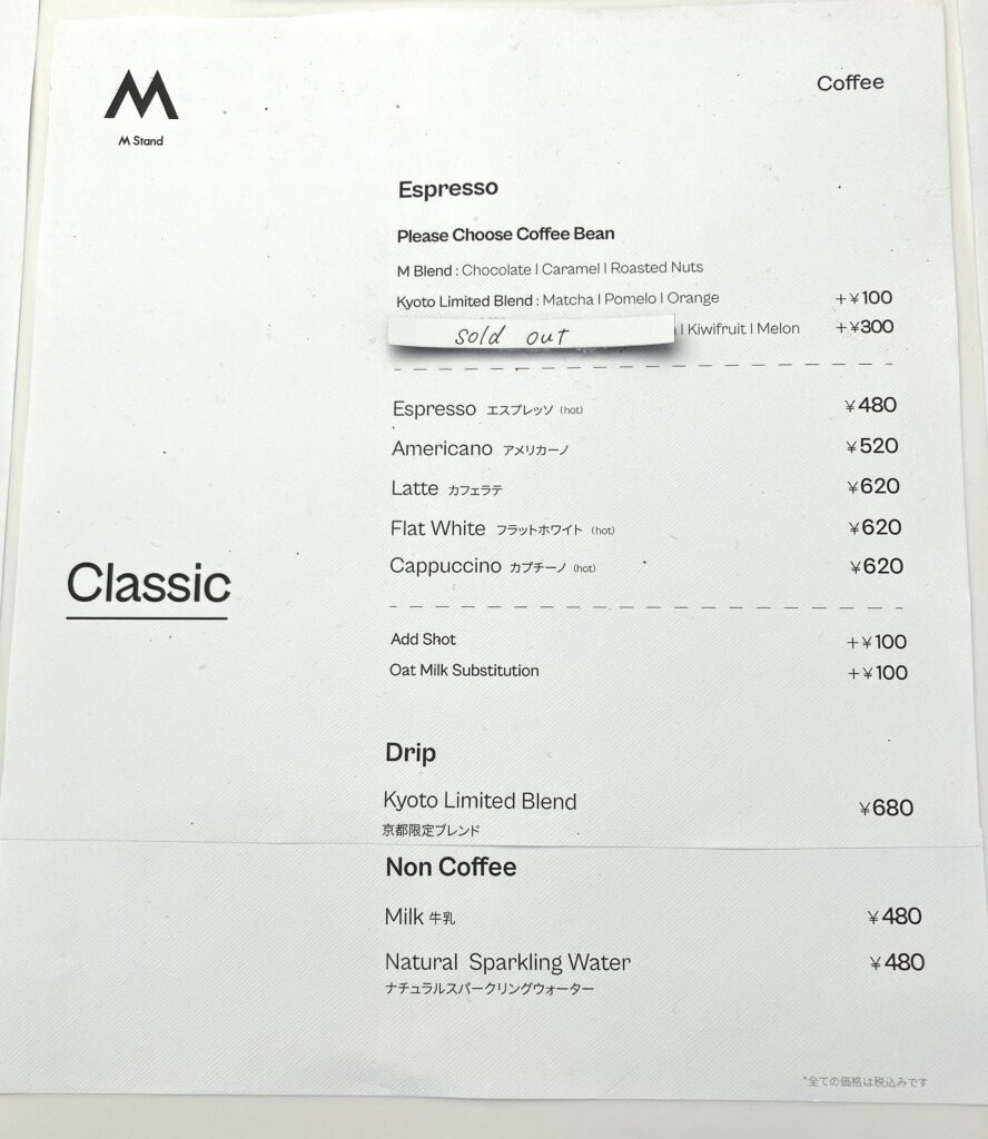 メニュー選びも楽しい!京都限定の一杯からトーストまで勢ぞろい|M Stand Coffee 三条鴨川店