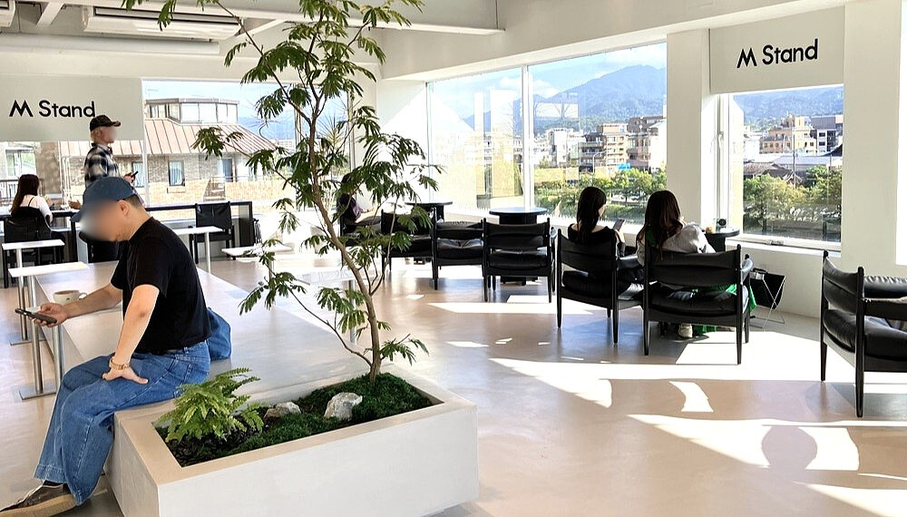 朝の光と鴨川ビューに癒される、開放感あふれる空間|M Stand Coffee 三条鴨川店